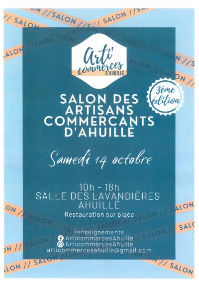 L'Association des artisans commerçants d'Ahuillé vous invite à la 3ème Édition du Salon Arti Commerces, qui aura lieu le samedi 14 octobre 2023 de 10h à 18h à la salle des Lavandières.